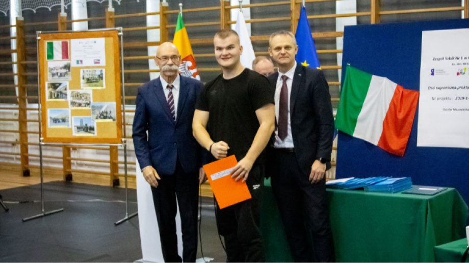 Podczas spotkania podsumowującego projekt pn. "Dziś zagraniczna praktyka - jutro własna firma" zostały wręczone przez starostę ostrowskiego Zbigniewa Chrupka oraz Piotra Siwka, dyrektora Zespołu Szkół nr 1 w Ostrowi Mazowieckiej zaświadczenia potwierdzające ukończenie praktyk.