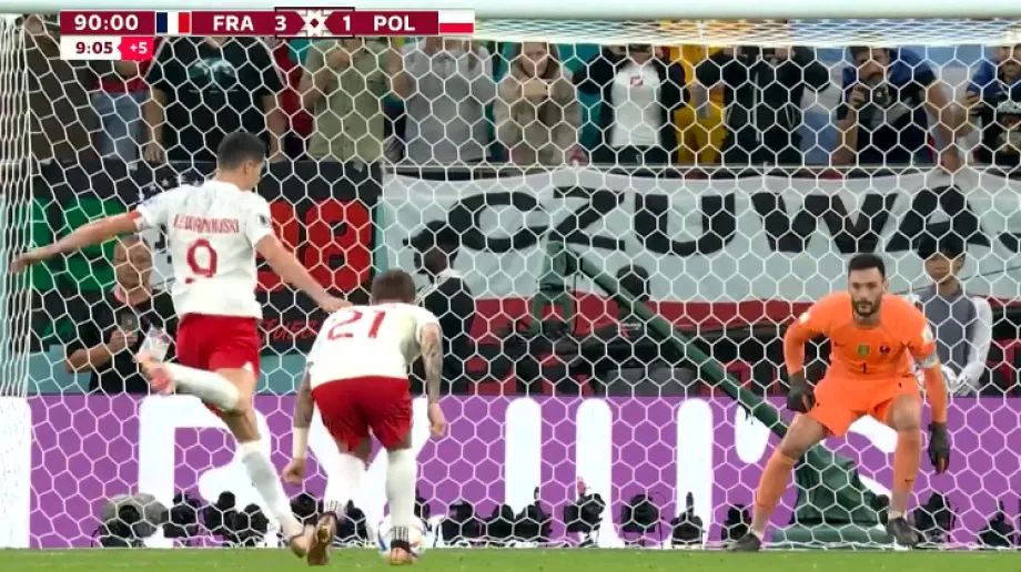 Bramki: Olivier Giroud 44', Kylian Mbappé 74', 90' - Robert Lewandowski 90+5 (k).