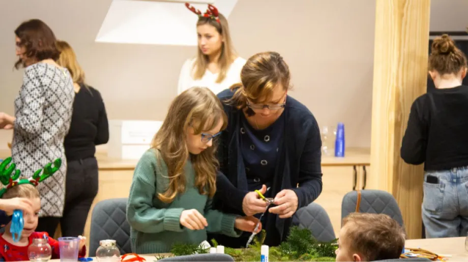 Zobacz zdjęcia: Rodzinne warsztaty w miejskiej bibliotece. Wykonano świąteczne ozdoby i dekoracje (zdjęcia)