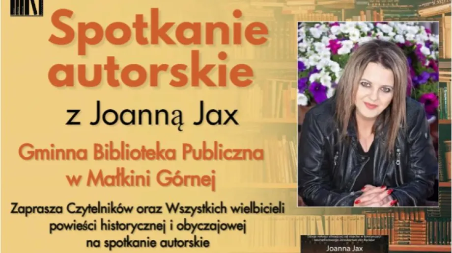 W dniu 14 marca 2023 roku o godzinie 17:00 w Gminnej Bibliotece Publicznej w Małkini Górnej odbędzie się wyjątkowe spotkanie autorskie z Joanną Jax. Autorka powieści, wśród których znajdują się m.in. "Dziedzictwo von Becków", "Zemsta i przebaczenie" czy "Prawda zapisana w popiołach", z pewnością zainteresuje fanów literatury.