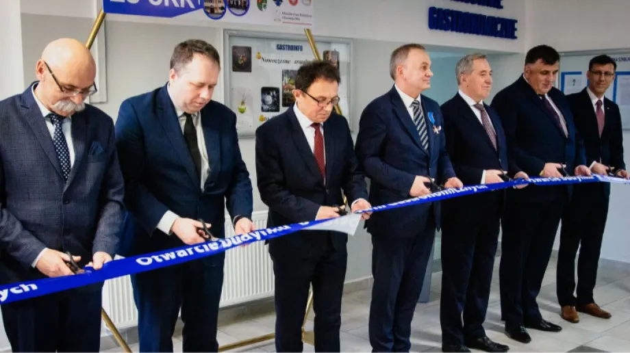 Tuż po wystąpieniach młodzieży każdy z obecnych otrzymał mały upominek w podzięce za obecność podczas tak ważnej chwili dla szkoły, a następnie rozpoczęło się oficjalne otwarcie części gastronomicznej. Wybrani goście przecięli wspólnie z dyrektorem wstęgę, a później odbyła się krótka modlitwa. Goście mogli zwiedzić pracownię gastronomiczną oraz wszystkie dostępne w niej sale.
