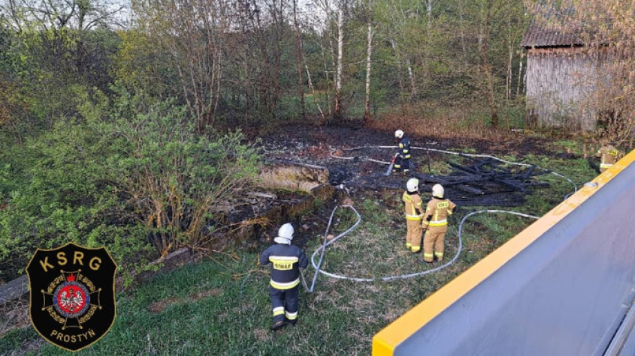 W poniedziałek 24 kwietnia o godzinie 17.30 doszło do pożaru drewnianego budynku gospodarczego w miejscowości Kolonia Złotki, leżącej w powiecie węgrowskim. Na szczęście, przed przybyciem pierwszych zastępów straży pożarnej, lokalni mieszkańcy własnymi siłami podjęli akcję gaśniczą, dzięki czemu pożar nie przeniósł się na pobliską stodołę. Po otrzymaniu zgłoszenia, na miejsce zdarzenia natychmiastowo skierowano sześć zastępów straży pożarnej, w tym dwa zastępy z Ochotniczej Straży Pożarnej w Prostyni, która działa na terenie powiatu ostrowskiego. Działania strażaków polegały na ugaszeniu ognia, zapobiegnięciu jego rozprzestrzenienia się na inne obiekty oraz zabezpieczeniu terenu.