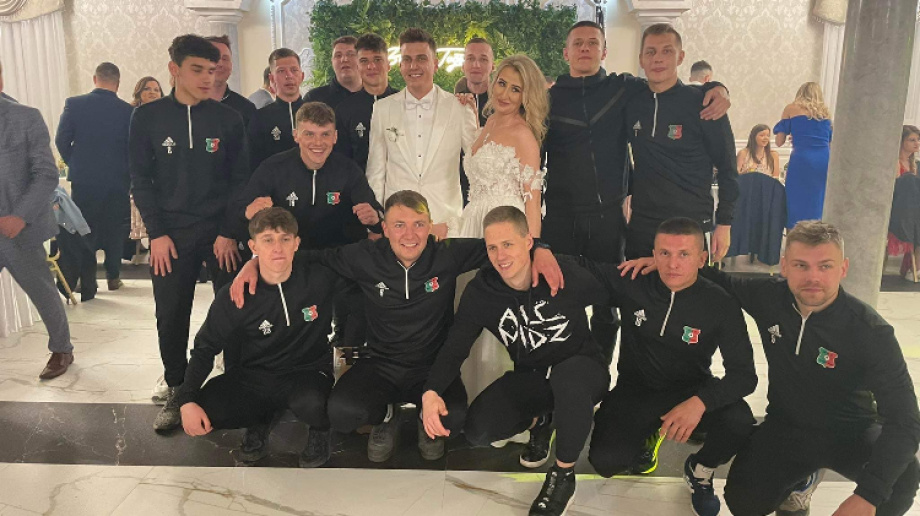 Napastnik MKS Małkinia miał jeden z najważniejszych dni w życiu. Napastnik ekipy powiedział sakramentalne "tak" ukochanej Katarzynie. Po walce o punkty drużyna pojechała na uroczystość do Marcina.