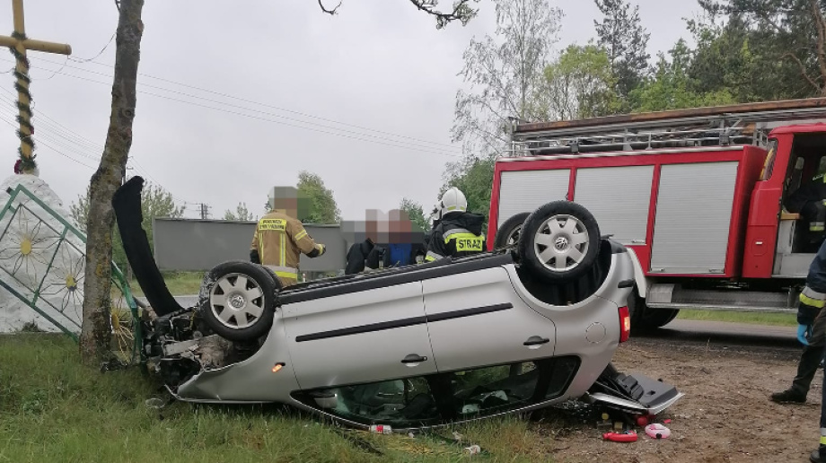Dramatyczny wypadek w Jeleniach! Nietrzeźwy kierowca dachował