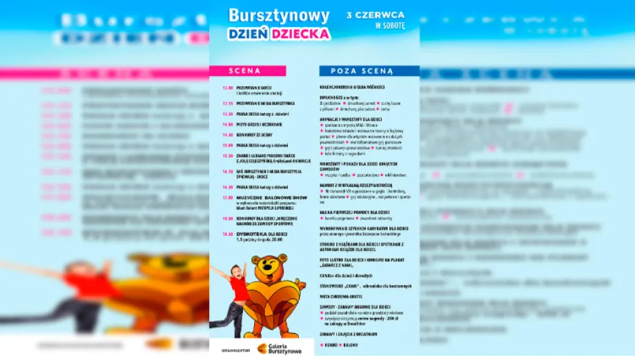 Poza tym mnóstwo zabawy, rozrywki, tańca, warsztatów dla dzieci, spotkań z autorami książek, karykatury dla dzieci oraz konkursy z nagrodami i zawody sportowe.