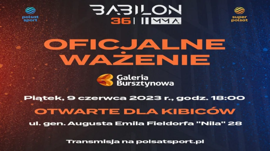 W najbliższą sobotę w Ostrołęce odbędzie się Babilon MMA 36. Dzień wcześniej - w piątek 9 czerwca o godzinie 18.00 - w Galerii Bursztynowej odbędzie się oficjalna ceremonia ważenia otwarta dla kibiców. Bilety na galę Babilon MMA 36 są dostępne w serwisie Eventim. Transmisja na  kanałach grupy Polsat oraz w Polsat Box Go.