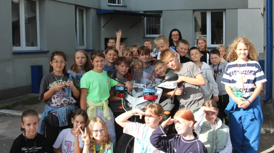 Pierwszymi gośćmi byli najmłodsi uczniowie. W sali konferencyjnej przedstawiono na czym polega taka praca oraz jakiego sprzętu się do niej czasami używa, np. ochraniaczy i hełmów. Podczas oprowadzania po budynku Pani policjant nie tylko opowiadała dzieciom o tym, co widzą, ale też zachęcała je do dyskusji i zadawania pytań. Młodzi uczniowie byli bardzo zainteresowani tematem i chętnie dzielili się swoją wiedzą.
