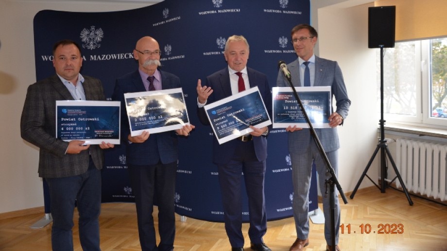 W środę 11 października 2023 roku w Delegaturze Mazowieckiego Urzędu Wojewódzkiego w Ostrołęce odbyła się uroczystość wręczenia promes na dofinansowanie kolejnych inwestycji w powiecie ostrowskim.