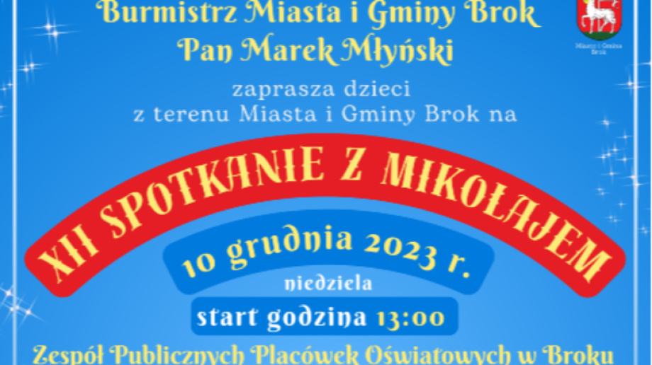 Zbliżają się Święta Bożego Narodzenia, a co za tym idzie również świąteczna atmosfera wkrada się do codzienności. Z tej okazji Urząd Miasta i Gminy Brok zaprasza na spotkanie z Mikołajem.