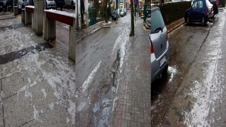 Piescy również powinni zachować szczególną ostrożność. Należy poruszać się po wyznaczonych chodnikach i przejściach dla pieszych. W przypadku śliskiej nawierzchni należy zwracać uwagę na to, gdzie się stawia nogi.