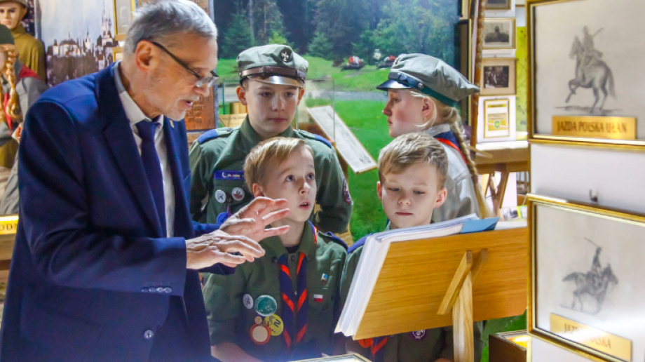 Na zdjęciach udało nam się uchwycić zwiedzających muzeum z przewodnikiem harcerzy z 21. drużyny harcerskiej Plejady wraz z ich opiekunką. Atmosfera w muzeum była pełna entuzjazmu i ciekawości, a uczestnicy jubileuszu wyrażali swoje zadowolenie i podziw dla starannie przygotowanej ekspozycji. Młodzi harcerze znaleźli nawet kilka przedmiotów związanych z ich działalnością. Na koniec zwiedzania, Pan przewodnik zagrał dla grupki melodię na pianinie, do której razem z nimi zaśpiewał.