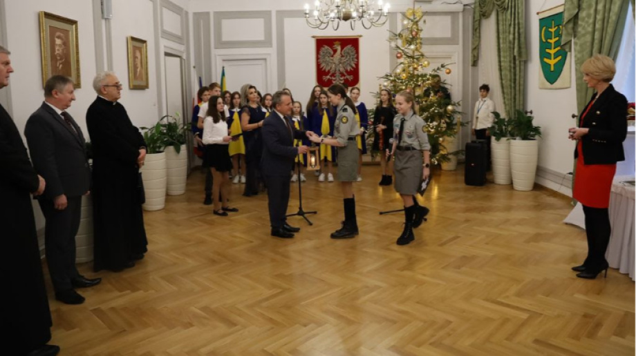 Uroczystość rozpoczęła się od przekazania Betlejemskiego Światła Pokoju przez harcerzy z 29 DH "Pogodni". Światło zostało zapalone w Betlejem w grudniu 1986 roku i od tamtej pory przekazywane jest do wielu krajów świata. Jest symbolem nadziei i pokoju.