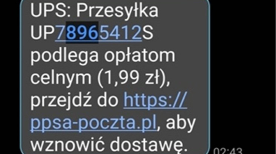 Uważaj na SMS-y dotyczące rzekomych dopłat do przesyłek kurierskich lub zmiany danych adresowych dotyczących przesyłki