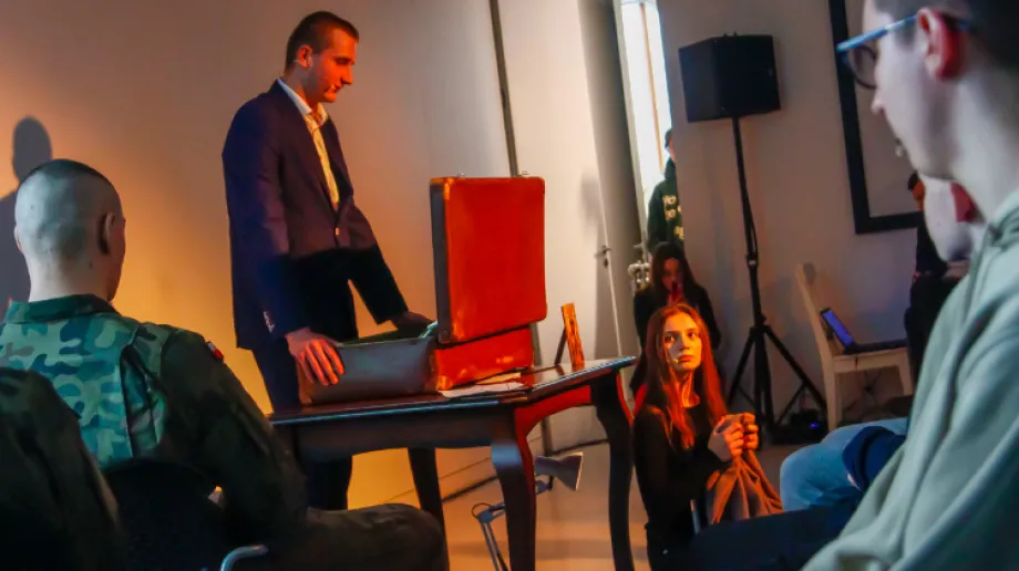 Uczniowie pięciu ostrowskich szkół wystąpili przed zebranymi gośćmi w Muzeum Dom Rodziny Pileckich, prezentując nowatorskie czytanie performatywne raportów znanego Rotmistrza z jego pobytu w obozie koncentracyjnym.