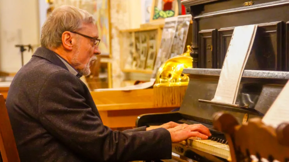 O godz. 17.00 w jednej z sali budynku zebrała się kameralna grupa osób chętnych do posłuchania gry i śpiewu patriotycznych pieśni w wykonaniu Pana Dariusza Wardaszki, kustosza muzeum oraz jego komentarza historycznego.