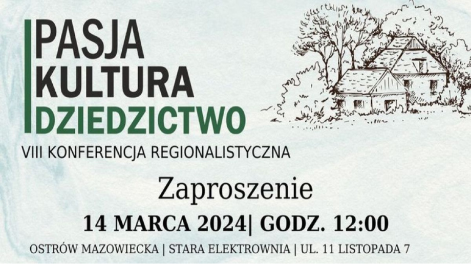 Urząd Miasta w Ostrowi Mazowieckiej wraz z Miejską Biblioteką Publiczną im. Marii Dąbrowskiej w Ostrowi Mazowieckiej oraz Ludźmi z Pasją zapraszają na VIII Konferencję Regionalistyczną "PASJA. KULTURA. DZIEDZICTWO".