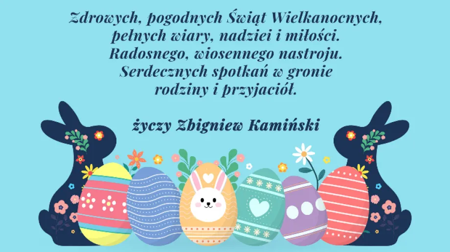 Zdrowych, pogodnych Świąt Wielkanocnych, pełnych wiary, nadziei i miłości. Radosnego, wiosennego nastroju. Serdecznych spotkań w gronie rodziny i przyjaciół. Życzy Zbigniew Kamiński