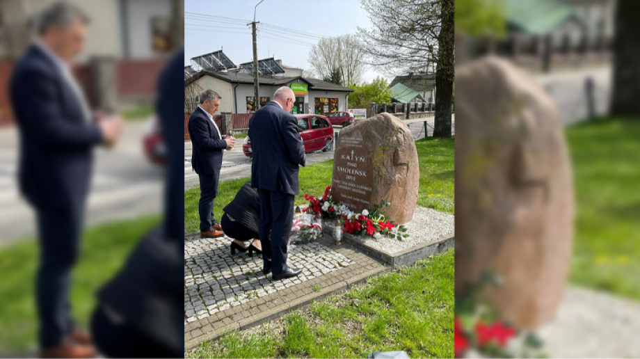 Delegacja z gminy Wąsewo uczciła 84. rocznicę Zbrodni Katyńskiej i 14. rocznicę Katastrofy Smoleńskiej, składając wiązanki kwiatów i zapalając znicze pod obeliskiem na placu im. ks. M. Kłobukowskiego.