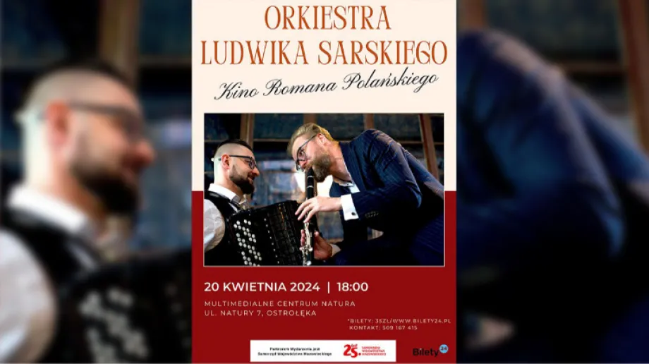 Multimedialne Centrum Natura przy ul. Natury 7 w Ostrołęce zaprasza 20. IV. 2024r. o godzinie 18.00 na emisje filmów krótkometrażowych Romana Polańskiego: Rozbijemy zabawę z 1957 roku, lampa z 1959 roku, Dwaj ludzie z szafą z 1958 roku, Gdy spadają anioły z 1959 roku. Podczas emisji filmów na scenie wystąpi Orkiestra Ludwika Sarskiego.