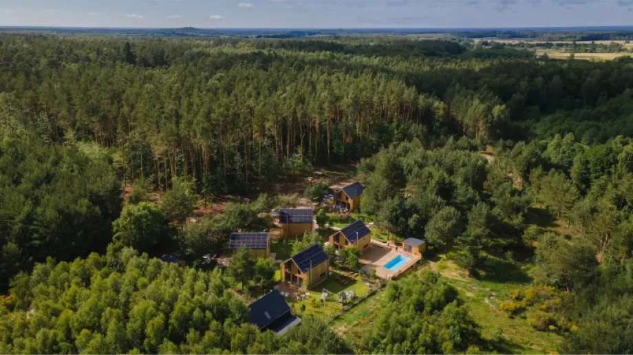 Pole w Stodole w Ciekocinie to raj dla miłośników dzikiej przyrody i komfortu. Położone w otoczeniu sosnowego lasu, oferuje 6 całorocznych domów z jacuzzi, sauną i basenem z podgrzewaną wodą.