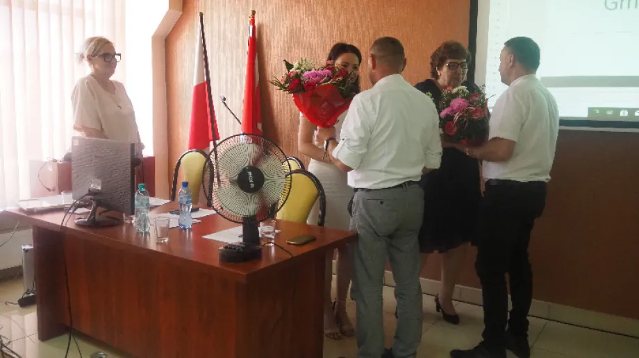 Ważnym punktem sesji było pożegnanie sekretarza Gminy Andrzejewo Pana Roberta Rosiaka w związku z objęciem nowego stanowiska - wicestarosty zambrowskiego. Nowym Sekretarzem Gminy została Pani Ewa Staniaszko, którą oficjalnie powitano na sesji.