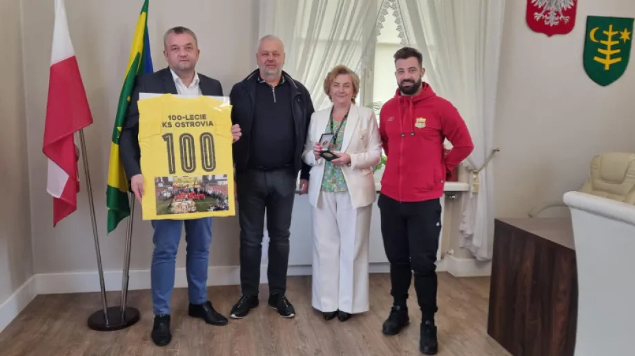 Delegacja Ostrovii Ostrów Mazowiecka wybrała się do miejskiego ratusza.