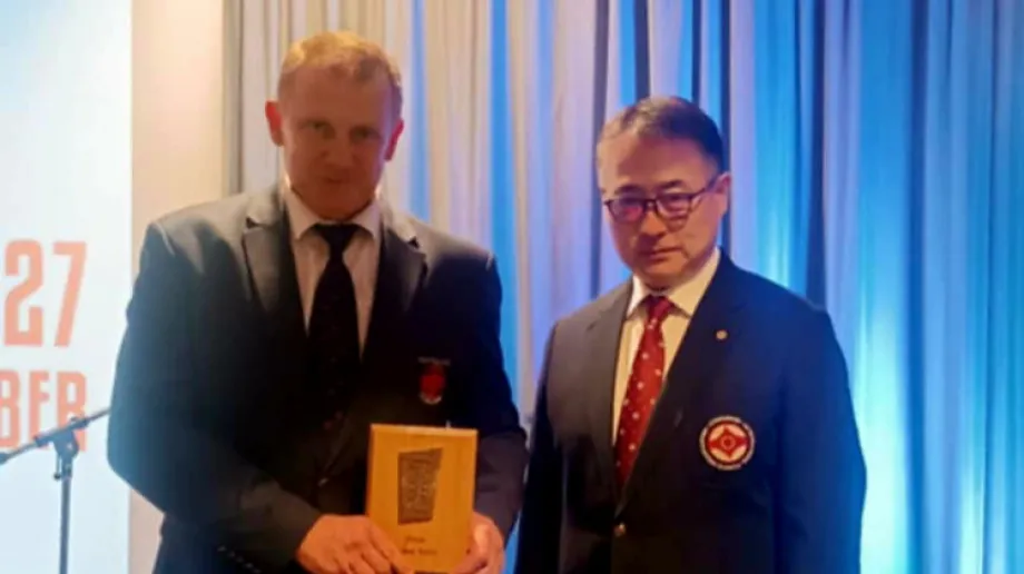 Nasz przedstawiciel otrzymał wyróżnienie z rąk Kancho Shokei Matsui, który jest prezydentem International Kyokushin Organization.