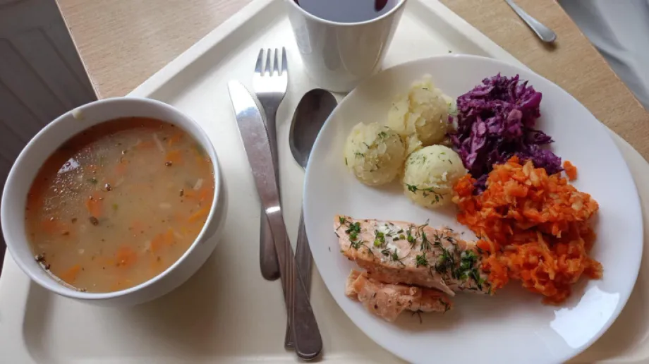 Śniadanie, które zaprezentowała autorka zdjęć, składało się z zupy mlecznej, dwóch kulek twarogu, odrobiny dżemu, gotowanego jabłka, kilku liści sałaty, marchewki lub dyni (jak zauważyła autorka – nie była pewna), suchego chleba i herbaty. Zdjęcie obiadu pokazywało natomiast łososia z puree ziemniaczanym, buraczkami, marchewką, czerwoną kapustą i zupą. Jak przyjęły to osoby komentujące?