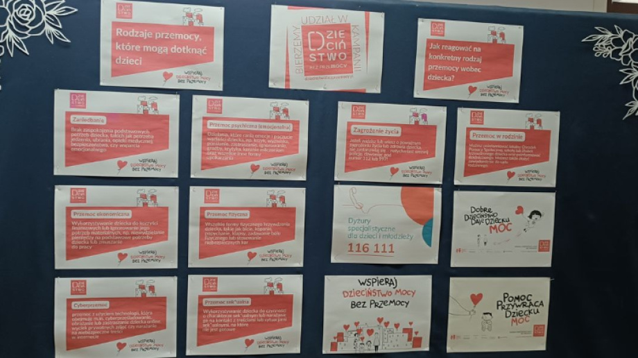 Tego dnia budynki oświatowe i inne obiekty w całej Polsce zostały podświetlone na czerwono,  jako wyraz symbolicznego sprzeciwu wobec krzywdzeniu dzieci. Szkoła aktywnie zaangażowała się w ogólnopolską kampanię mającą na celu przeciwdziałanie przemocy. W ramach inicjatywy zorganizowano tematyczne lekcje, które pomogły uczniom lepiej zrozumieć problem przemocy oraz nauczyły, jak się przed nią chronić. Odbył się także konkurs plastyczny, którego wyniki zostaną ogłoszone wkrótce.