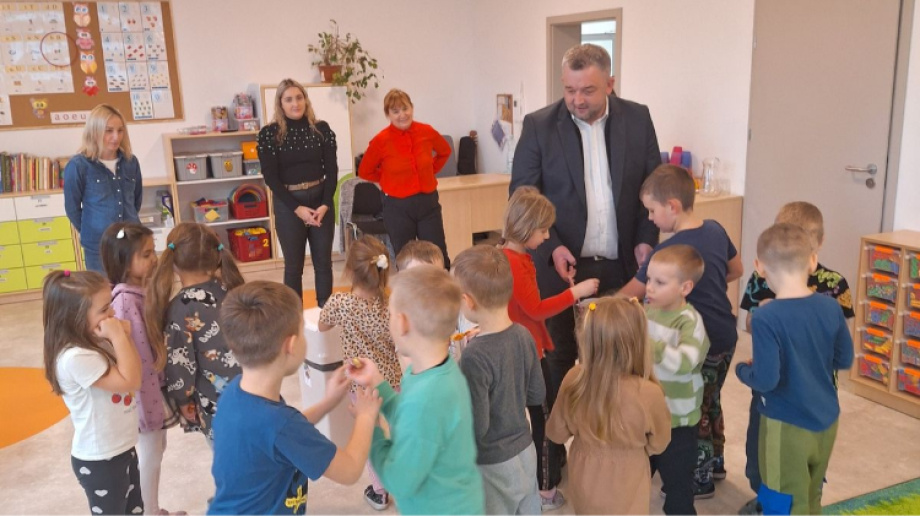 Burmistrz Hubert Betlejewski odwiedził przedszkolaków, przynosząc ze sobą nie tylko słodki poczęstunek, ale także wiele radości i uśmiechów.
