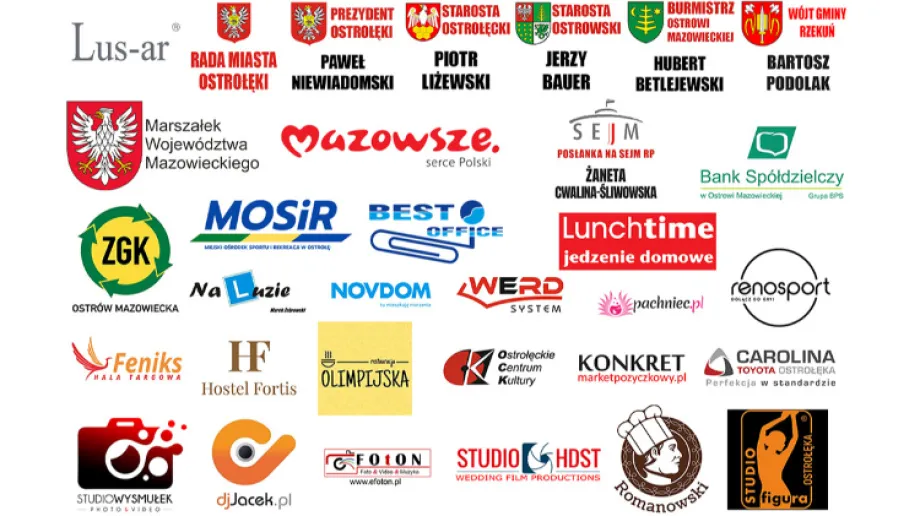 Lus-ar, Prezydent Ostrołęki Paweł Niewiadomski, Burmistrz Ostrowi Mazowieckiej Hubert Betlejewski, Starosta Ostrołęcki Piotr Liżewski, Starosta Ostrowski Jerzy Bauer, Rada Miasta Ostrołęki, Wójt Gminy Rzekuń Bartosz Podolak, Posłanka na Sejm RP Żaneta Cwalina-Śliwowska, Poseł na Sejm RP Marcin Grabowski, Poseł na Sejm RP Mariusz Popielarz, Mazowsze oraz: Restauracja Olimpijska, Bank Spółdzielczy w Ostrowi Mazowieckiej, MOSiR, Hostel Fortis, Ostrołęckie Centrum Kultury, Na luzie, pachniec.pl,  Best Office, Studio Figura, Lunch Time, Novdom, RenoSport, WERD, ZGK Ostrów Mazowiecka, Feniks, Romanowski, Konkret.