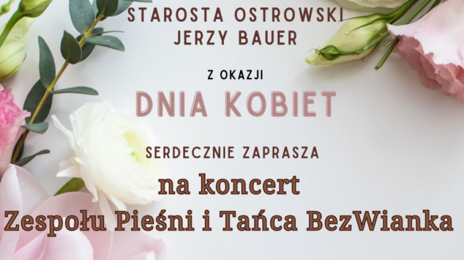 Z okazji Dnia Kobiet starosta ostrowski Jerzy Bauer zaprasza na wyjątkowy koncert Zespołu Pieśni i Tańca BezWianka.
