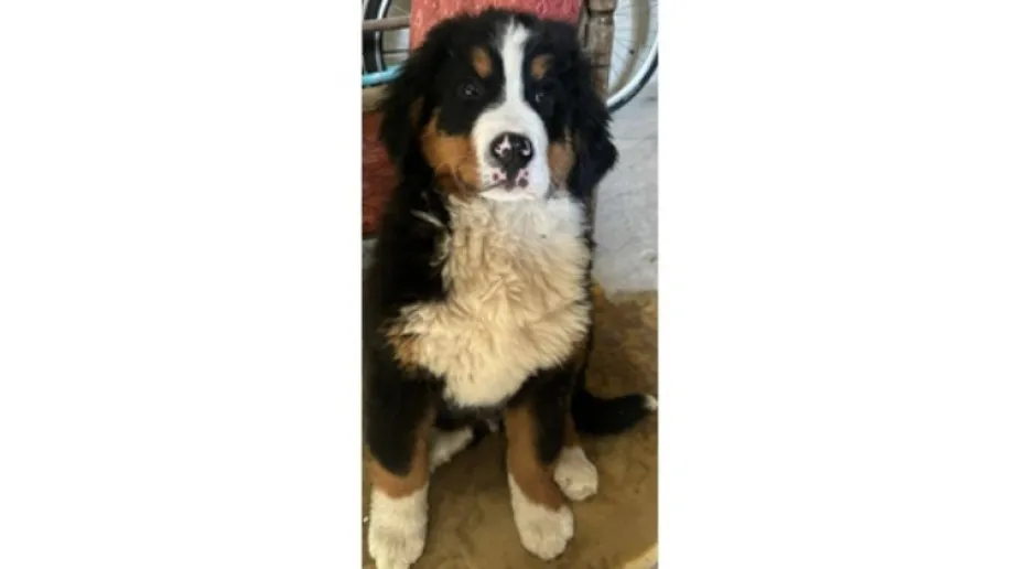 Skradziony szczeniak berneńczyka, który szybko wrócił do swojego właściciela, fot. KPP w Ostrowi Mazowieckiej.