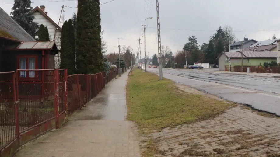 Widok na ul. Warszawską w Ostrowi Mazowieckiej, gdzie mieszkańcy po lewej stronie drogi zmagają się z problemem zalewania działek wodami opadowym.