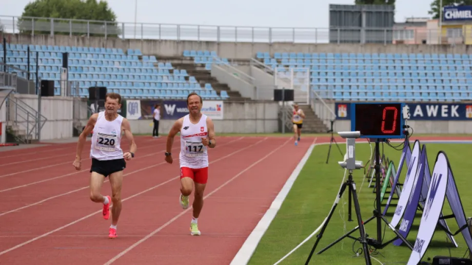 Zdj. Nr 5 Finisz w zwycięzkim biegu na dystansie 800 m w kat M-60 w Mistrzostwach Polski Masters.2024 r.- Włocławek (Robert Gajda - nr startowy 117).