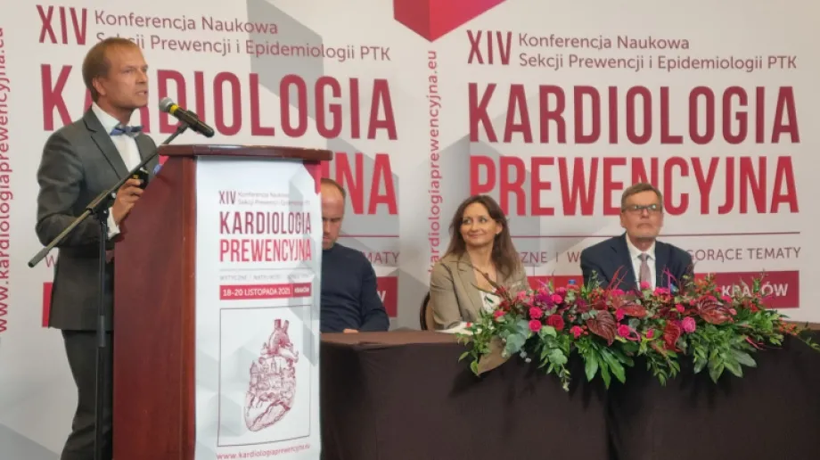 Zdj 3. Prof. Robert Gajda jako wykładowca na XIV ZjeździeKardiologii Prewencyjnej. Po prawej stronie prof. Wojciech Drygas -najbliższy współpracownik R.Gajdy, jego guru, mentor i przyjaciel.
