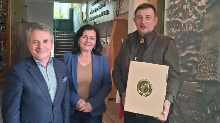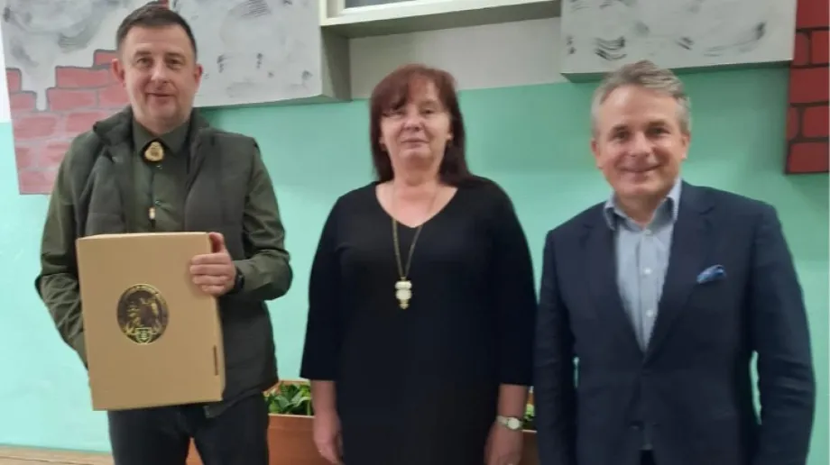 9 maja 2025 r. Starosta Ostrowski Jerzy Bauer wspólnie z Michałem Modrzewskim, prezesem Fundacji Venator, przekazali kolejnym czterem szkołom karty projektu edukacji przyrodniczej SarnaNieJestŻonąJelenia, który stanowi część III FESTIWALU KULTURY ŁOWIECKIEJ w Ostrowi Mazowieckiej.