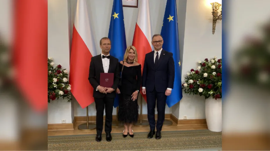 Na zdjęciach: prezydent RP - Andrzej Duda, prof. dr hab. n. med. Robert Gajda, partnerka nominata - Beata Olszewska Marra.