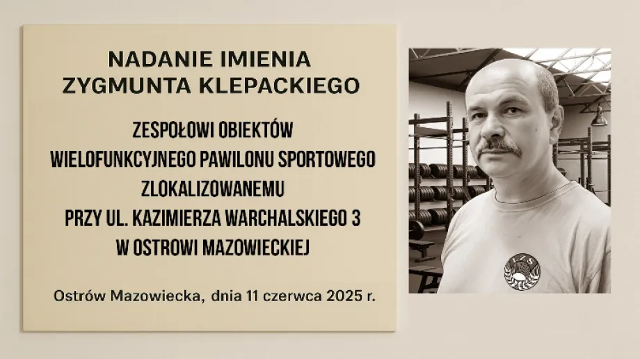 Rada Miasta Ostrów Mazowiecka podczas jutrzejszej sesji (11 czerwca) zdecyduje o nadaniu Zespołowi Obiektów Wielofunkcyjnego Pawilonu Sportowego przy ulicy Kazimierza Warchalskiego 3 imienia Zygmunta Klepackiego.