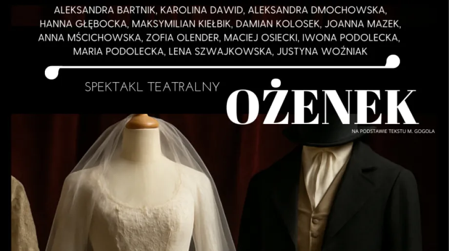 24 czerwca o godzinie 19.00 na Scenie Underground przy ul. Prusa 72, budynek Pod Lipami, poziom -1 odbędzie się wyjątkowa premiera spektaklu "Ożenek" na podstawie komedii Mikołaja Gogola. Na scenie zobaczymy międzypokoleniową grupę teatralną działającą przy Fundacji Kreatorzy Marzeń. Czternaście osób - młodzież, dorośli i seniorzy - połączyła wspólna pasja do teatru i opowiadania historii poprzez sztukę. Ich interpretacja "Ożenku" to barwna, pełna absurdu i błyskotliwego humoru opowieść o małżeńskich rozgrywkach, oczekiwaniach społecznych i relacjach międzyludzkich.
