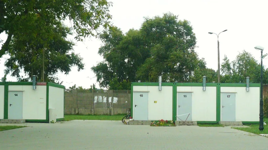 Kontenery socjalne w Poznaniu, istniały w latach 2011–2016, zlikwidowano je po protestach mieszkańców. Fot. MOs810 / Wikimedia Commons (CC BY-SA 4.0)