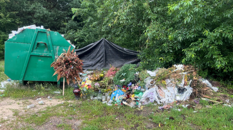 Widać czasami jak gościu utylizuje tam plastikowe wiązanki i resztki zniczy pali ognisko i donosi to wszystko ze śmietnika, ot taka ekologia tam jest ,po co płacić za wywóz śmieci...