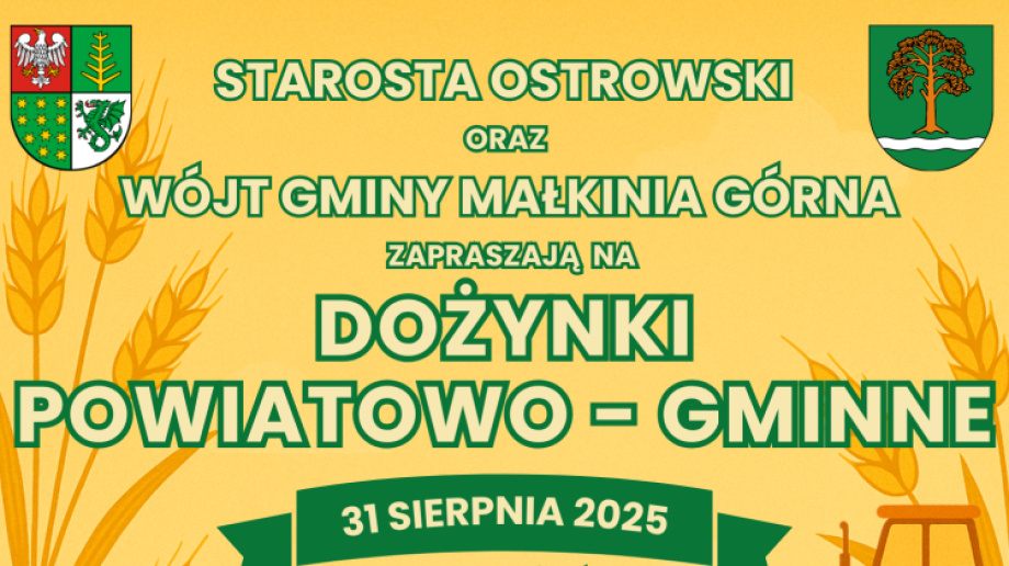 Będzie tradycyjnie, kolorowo i muzycznie. Dożynki Powiatowo-Gminne 2025 w Małkini Górnej zapowiadają się jako wielkie święto plonów z bogatym programem i gwiazdami polskiej sceny muzycznej.