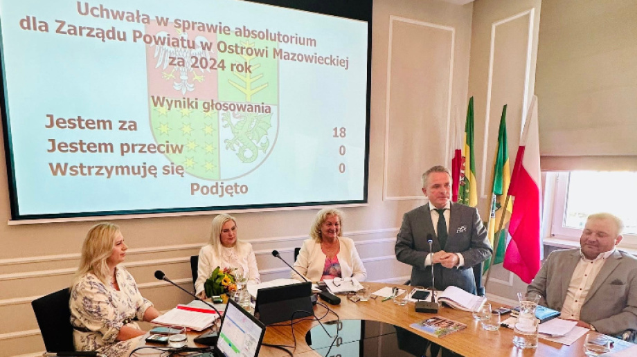 Rada Powiatu w Ostrowi Mazowieckiej podczas XV Sesji Rady Powiatu jednogłośnie udzieliła Zarządowi Powiatu wotum zaufania oraz podjęła uchwałę o udzieleniu absolutorium.