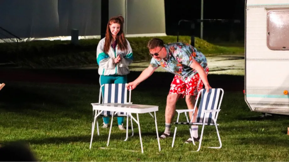 Na boisku sportowym przy szkole zgromadziły się dziesiątki osób, by przenieść się w barwną podróż do lat 80. Mimo niesprzyjającej pogody widzowie nie zawiedli i zajęli miejsca na krzesłach, tworząc wyjątkowy klimat wspólnego oglądania pod chmurką. Już od pierwszych scen poczuli powiew nadmorskiego klimatu, bo spektakl został wzbogacony o nietypową scenografię, efekty specjalne i muzyczną oprawę.