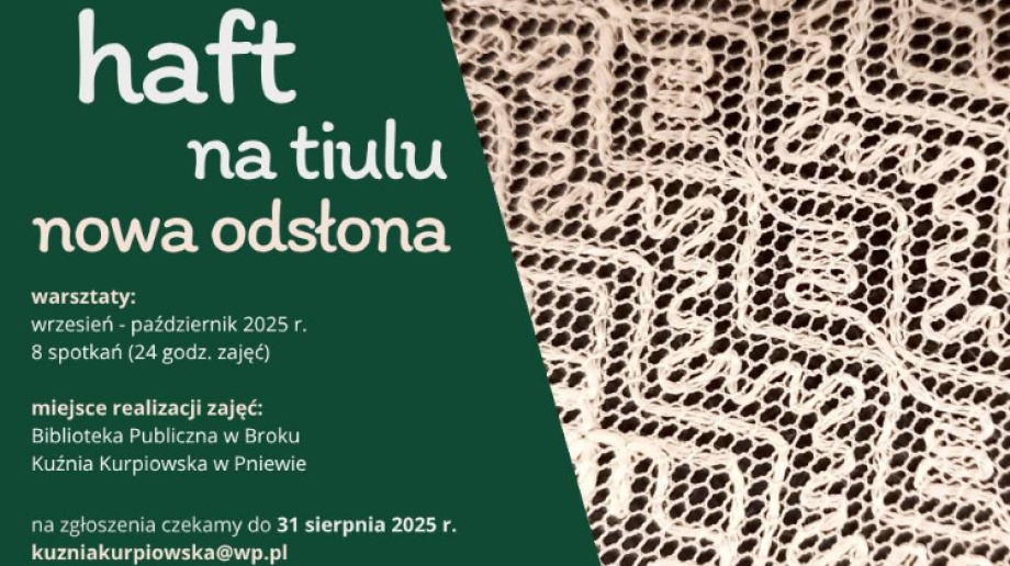 Pełen wdzięku i wymagający precyzji - haft na tiulu powraca w ramach cyklu warsztatów, które odbędą się tej jesieni. Projekt „Haft na tiulu – nowa odsłona” to wyjątkowa okazja, by poznać tajniki jednej z najpiękniejszych kurpiowskich technik rękodzielniczych. Zajęcia kierowane są do wszystkich, niezależnie od poziomu zaawansowania. Zarówno osoby, które nigdy nie trzymały igły w ręku, jak i te, które już próbowały haftu, znajdą tu coś dla siebie. Uczestnicy wezmą udział w ośmiu spotkaniach, podczas których nauczą się podstaw, a także bardziej zaawansowanych technik zdobienia delikatnej siateczki z tiulu.