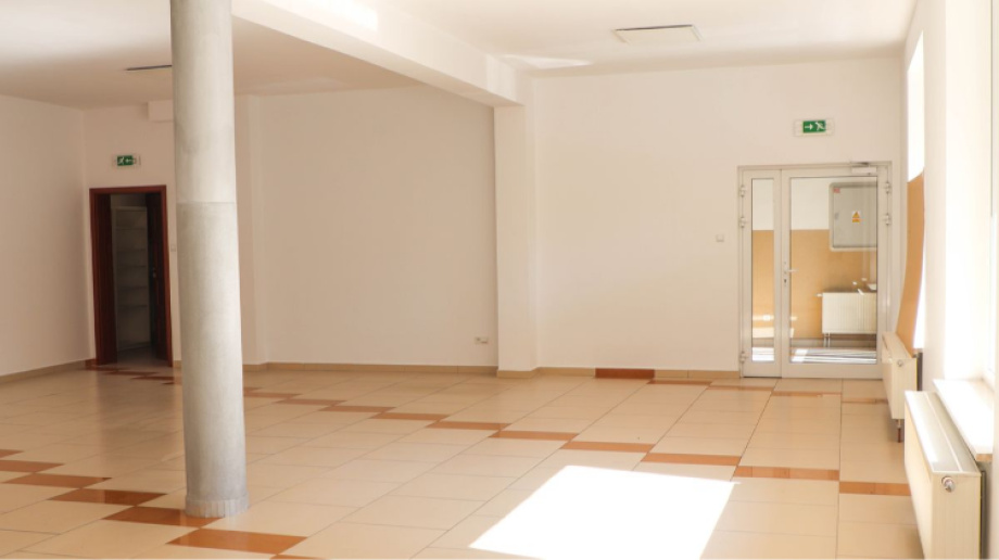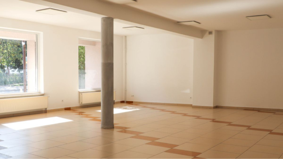 Lokal o powierzchni 110 m.kw. znajduje się na parterze budynku, u zbiegu ulic Lubiejewskiej i Sikorskiego. Składa się z otwartej przestrzeni o powierzchni 100 m.kw. oraz 10 m.kw. zaplecza z łazienką. Wejście do lokalu prowadzi bezpośrednio z ulicy, co zwiększa jego widoczność i dostępność dla klientów.