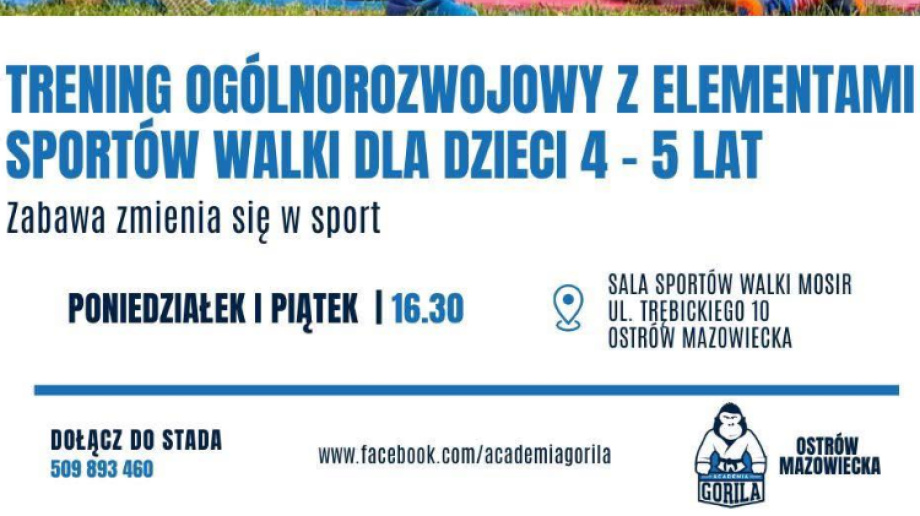 Na macie spotkają się najmłodsi, dla których ruch i zabawa staną się początkiem sportowej przygody. W Ostrowi Mazowieckiej ruszają zajęcia ogólnorozwojowe z elementami sportów walki przeznaczone dla dzieci w wieku 4–5 lat.
