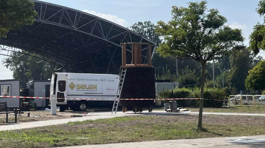 Na działce przy Omedze w Ostrowi Mazowieckiej widać finałowe prace przy tężni solankowej. Wykonawca montuje wypełnienie z gałązek tarniny. Przypomnijmy, że najkorzystniejszą ofertę na budowę tężni złożyła firma Selen z Koszalina za 432 tys. zł. Miasto pozyskało 200 tys. zł dofinansowania z programu "Mazowsze dla klimatu 2024".