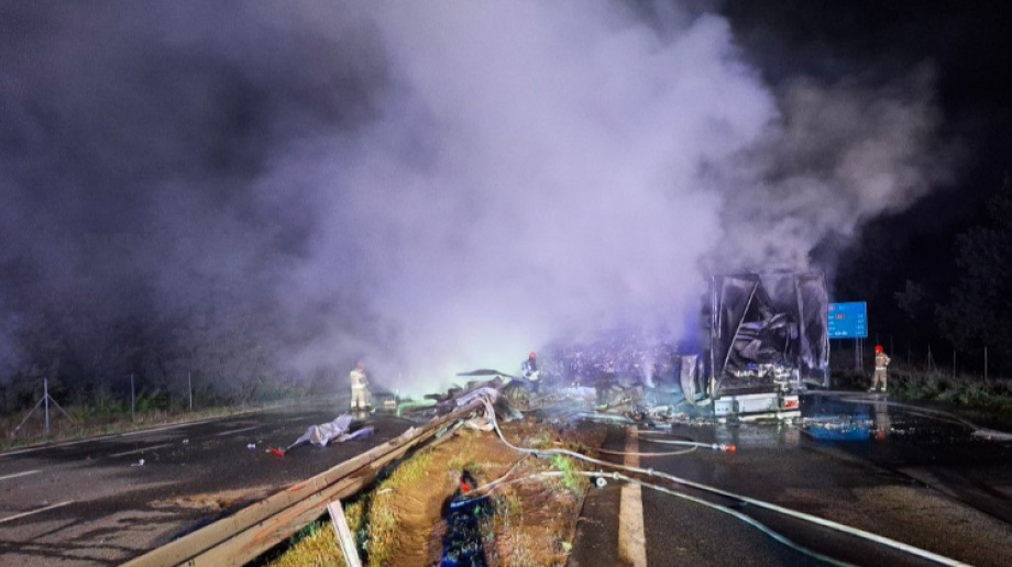 - Dziś około godz.4:00 otrzymaliśmy zgłoszenie o pożarze ciężarówki na obwodnicy miasta Ostrowi Mazowieckiej na 3 km drogi S8 w kierunku Białegostoku. Na miejsce pilnie pojechały służby. Policjanci ustalili, że 44-latkowi obywatelowi Polski kierującemu ciężarówką Scania z naczepą podczas jazdy pękła opona w wyniku czego stracił panowanie nad pojazdem. Następnie uderzył w bok innej ciężarówki Scania jadącej obok (kierowanej przez 36-letniego obywatela Białorusi), po czym uderzył w barierki, wówczas doszło do pożaru pojazdu - informuje KPP w Ostrowi Mazowieckiej.